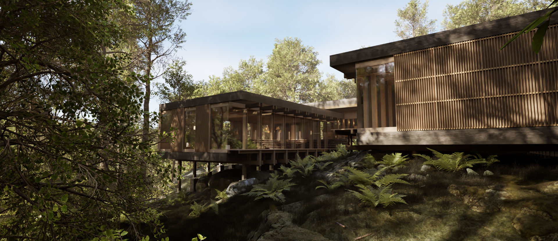 Jahr: 2025 Programm: Unreal-Engine Architekturvisualisierung in Bild und Video Datentransfer von Revit und Blender nach Unreal Engine mittels Datasmith. Aufbau von Levels und Umgebungen durch prozedurale Landschaftsgestaltung. Entwicklung eigener komplexer Materialien. Erstellung von Partikelsystemen sowie Audiokomponenten für Effekte und Umgebungsgeräusche. Umsetzung von Interaktionen durch visuelles Skripting mit Blueprints. Konzeption und Implementierung eines projektspezifischen User Interfaces. Erstellung von Renderings mit und ohne Path Tracing unter Einsatz von Lumen, Hardware Raytracing und unter Berücksichtigung der Nanite-Funktionalität. Anpassung von Atmosphäre, Stil und Bildwirkung durch Post Processing und Color Grading. Produktion und Export von Animationen und Videos mithilfe des Sequencers und der Movie Render Queue.